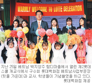 롯데백화점이 베트남에서 고객이 참여하는 기부 행사를 벌인 것은 이번이 두 번째다. 롯데백화점은 2009년 9월 고객들이 함께 마련한 기금으로 베트남 중부 광아이 지역에 제1롯데스쿨인 손키중학교를 세웠다.