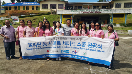 플랜코리아가 사회복지공동모금회와 함께 필리핀 동사마르 오라스 지역에 ‘세이프 스쿨’ 지원사업을 완료하고 지난 16일 필리핀 현지 오라스 공립농산업고등학교에서 완공식을 개최했다.